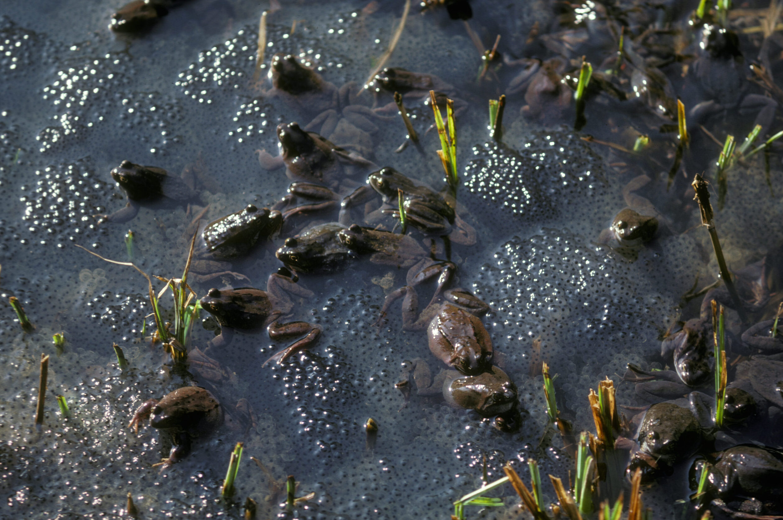 Die aktuellen milden Temperaturen, kombiniert mit feuchter Witterung, lassen schon bald die Grasfrösche (Rana temporaria) aus ihrer Winterruhe erwachen, um sich der wichtigen Aufgabe der Fortpflanzung zu widmen. Einige haben sich deshalb bereits im Herbst in die Nähe der Laichgewässer begeben und hier an sauerstoffreichen Stellen überwintert. Andere verbrachten die kalte Jahreszeit in frostgeschützten Erdlöchern im Waldboden und wandern nun im Vorfrühling zu ihren angestammten Gewässern. Meistens dorthin, wo sie selber geboren wurden. Das kann ein grosser Weiher, ein kleiner Tümpel, ein Wassergraben, ein träge fliessender Bach oder ein Gartenteich sein, Grasfrösche sind diesbezüglich nicht besonders heikel.